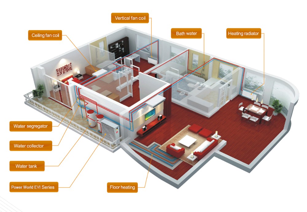 First of all, there is a big difference in investment costs. Electric boilers are cheaper than air source heat pumps. However, when generating the same amount of heat, electric boilers require three times more electricity than air source heat pumps. Energy-saving air source heat pumps save about 3-4 times more than traditional electric heating. It absorbs heat in the air and generates heat through the compressor, while the electric boiler is a device that directly generates heat without any conversion. Since the electric boiler heating process only generates 90% of the heat, the energy-saving air source heat pump is more efficient than the electric boiler. The air source heat pump can perform the process of converting 1 kW to 4 kW throughout the year, while the boiler can only process 1 kW to a power of 0.95 kW or lower.