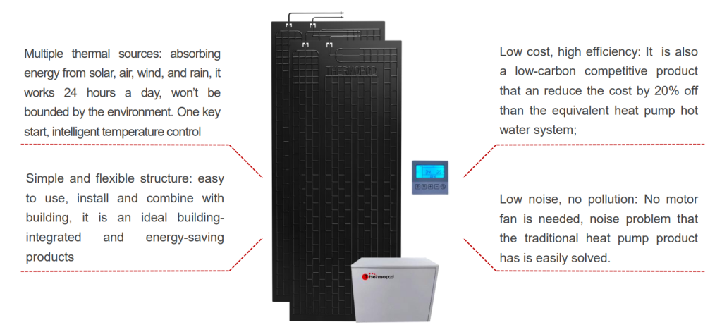 Thermopod unit is designed specifically for the weather condition and temperature range in Europe. It can work under temperature that is even as low as -10C and be compatible with your existing hot water heating system, just simply connecting to existing system will do.